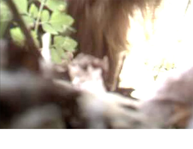 画面には茶色い剛毛に覆われた腕や体の一部が見え隠れし、一瞬だけ顔のような物が映り込んでいる。カメラがこの生物の手によって動かされているため、なかなか全容がつかめないものになっている。