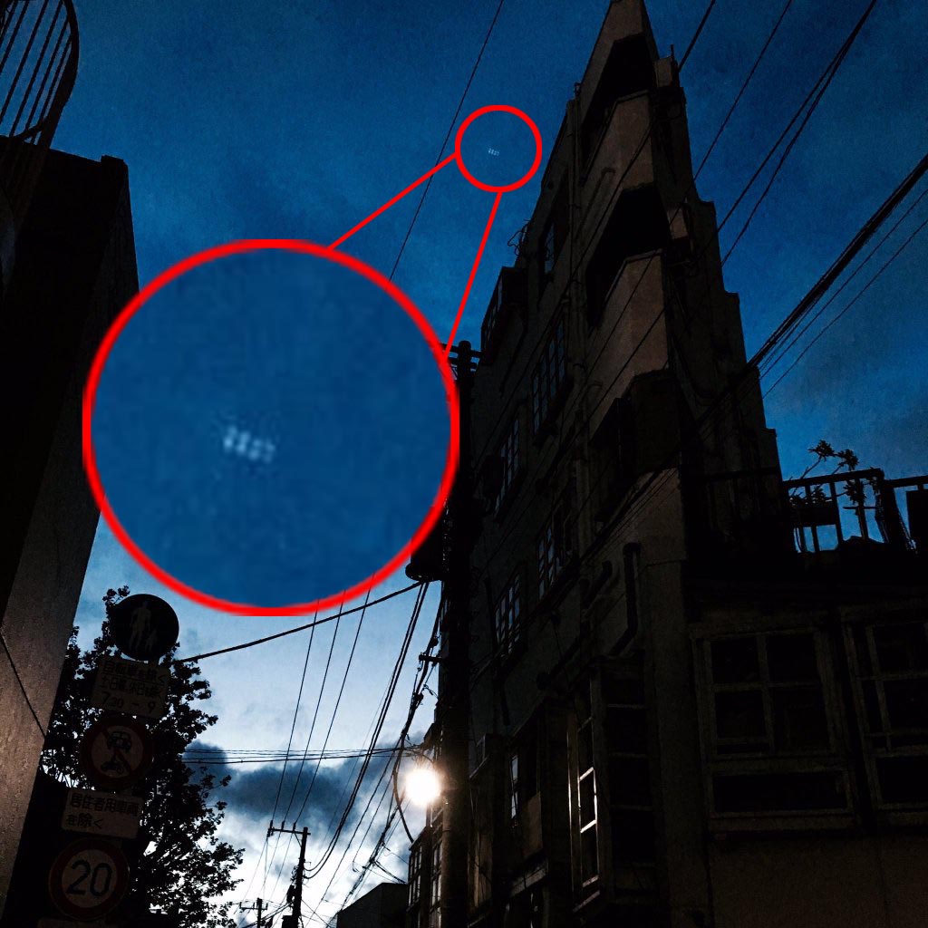 撮影されたのは2015年4月7日頃、東京都目黒区で撮影されたとされたものだという。空に星とは明らかに違う発光した物体が8つほど並んでいる。周囲にほかの星はなく、この物体が異様なものであるのがひと目でわかるかと思う。あまりに鮮明な8連のため、UFOというよりは、懐かしの予防接種のBCGの跡を思い出す。