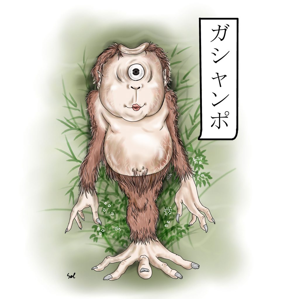 「かしゃんぼ」とは大きな一つ目と一本だけの足が特徴で、山に住み、時には人を襲うこともあるという妖怪だ。