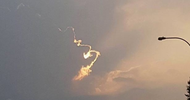 撮影者は車を運転中、晴れた空に赤く光る火の玉のようなものが出現。それが空に上っていったあとに残されたのが、この奇妙な雲だったと証言している。