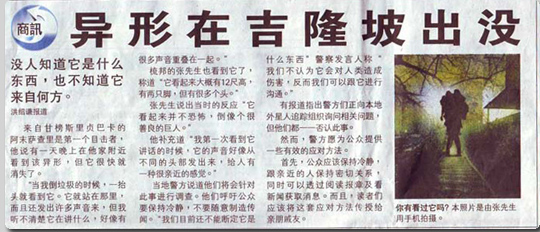 目撃者らは、同地のゴミ処理場にて作業中にこの巨人と遭遇、中国人の作業員が持っていた携帯電話のカメラを使用し、この巨人の姿を写真に収めることに成功したのだという。