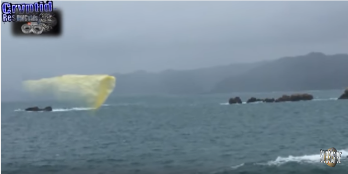 このような煙が出るとすれば、発煙筒だろうか。しかし発煙筒ならば明るい光も伴うはずであるし、発生している位置から考えると水の中か水面のすぐ下にあるように思えるので、煙の柱が立つのだろうかという疑問も出る。