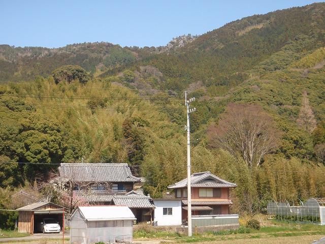 さて、現在の阿南市山口町大久保の国道195号線沿いにローソン阿南山口町店がある。ここから北側に見える山の山頂に岩の塊がある。