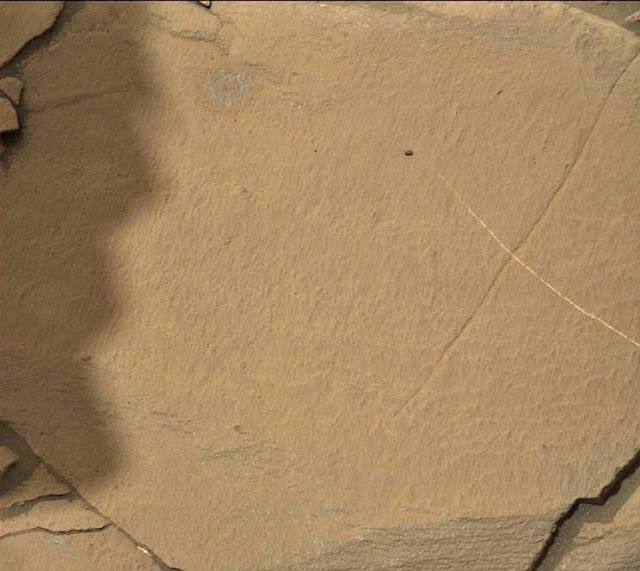 NASAより公開されている探査衛星が捉えた火星地表の画像であるが、ここに奇妙な跡が存在している。地表に走った細い溝に交差するように、白い一本の「わだち」らしきものが出来ているのだ。周囲の地形や岩などからみても、この筋が比較的最近付いたものだという事が推察できる。